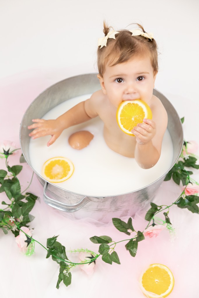 Fotografiranje ob prvem rojstnem dnevu s tortico in mlečno kopeljo!